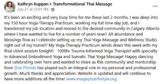I even have an online coaching, certification and mentoring program for Thai Yoga Massage.